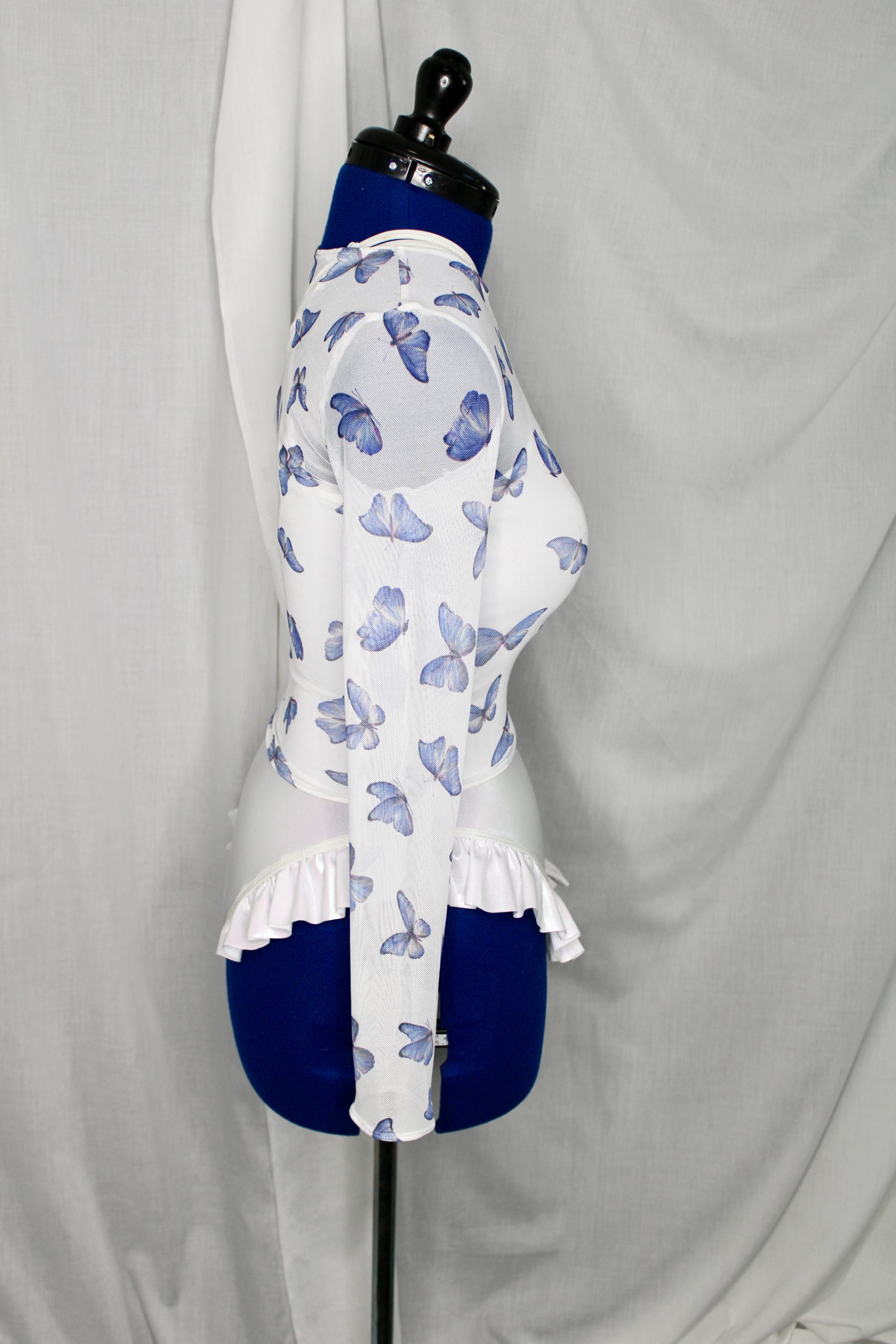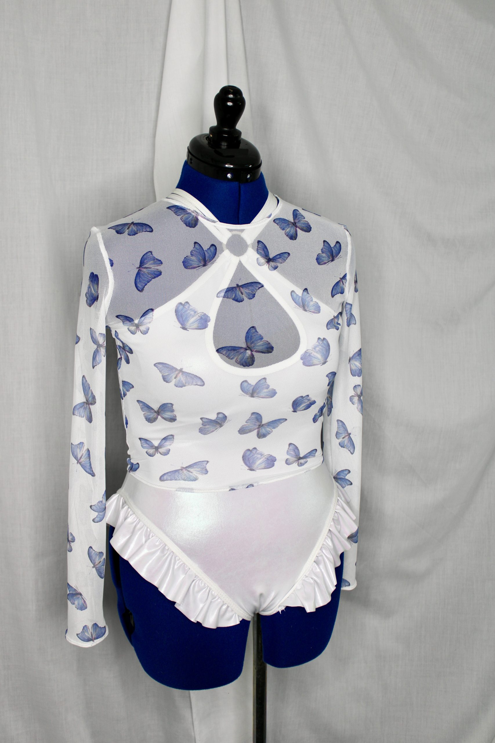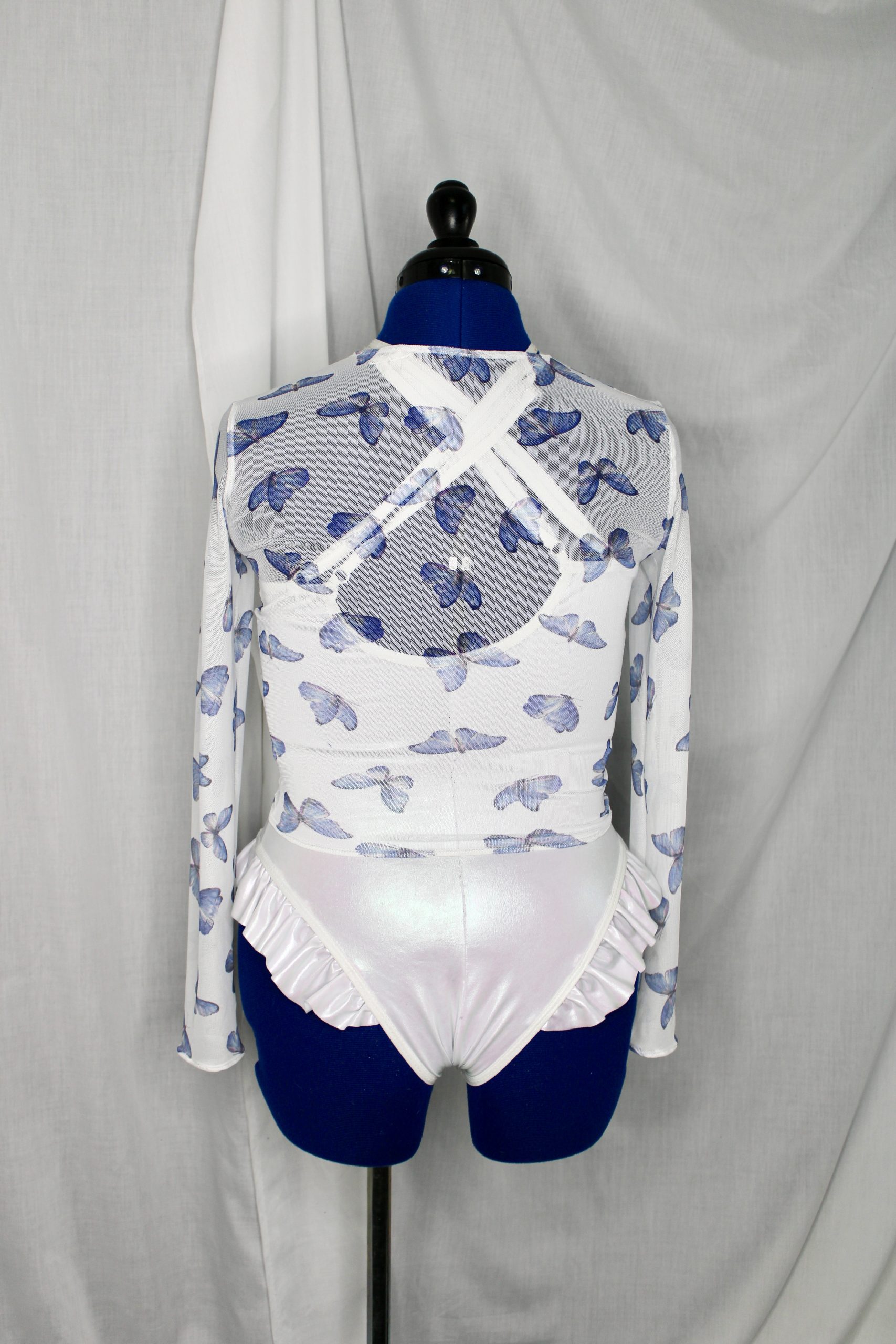 Be the first to review “white blue butterfly music festival mesh shirt”